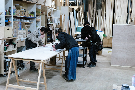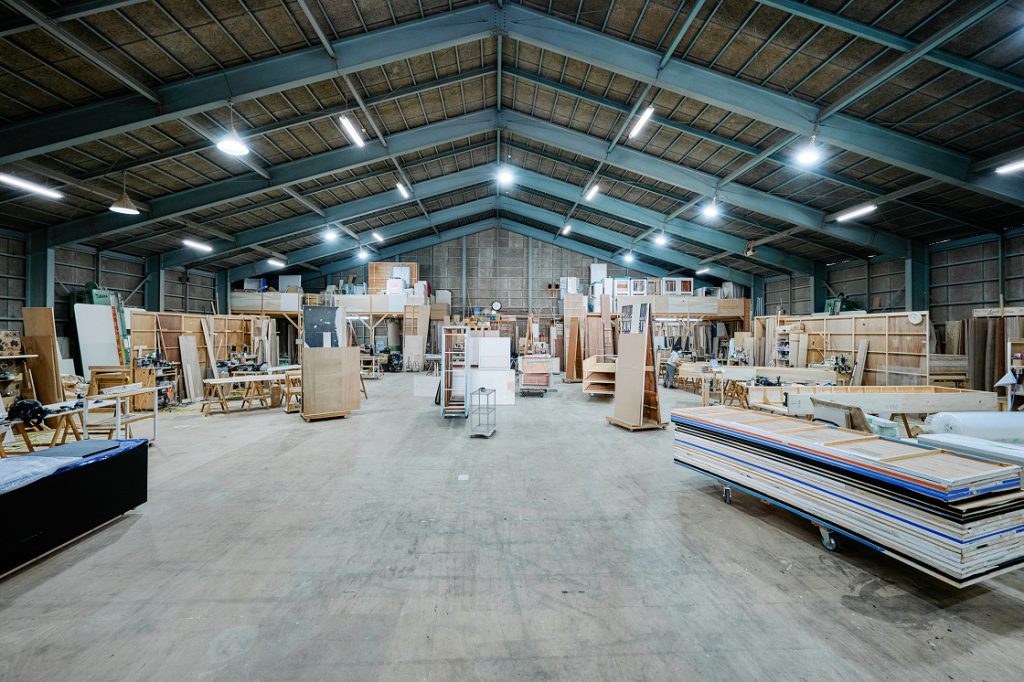 埼玉に約300坪の木工工場を保有。MCクラフトは木工から始まった会社のため、職人のノウハウが蓄積されており、過去の失敗や成功もその経験が資産として積み上がり、次のクライアントへのより良い提案に繋がる土台となっています。 通常は『リスク』としてみなされてしまうような特殊造形や新しい試みであっても、工場でモックアップを作り、納まりを試作できるため、適正なコストでのご提供を可能にしています。